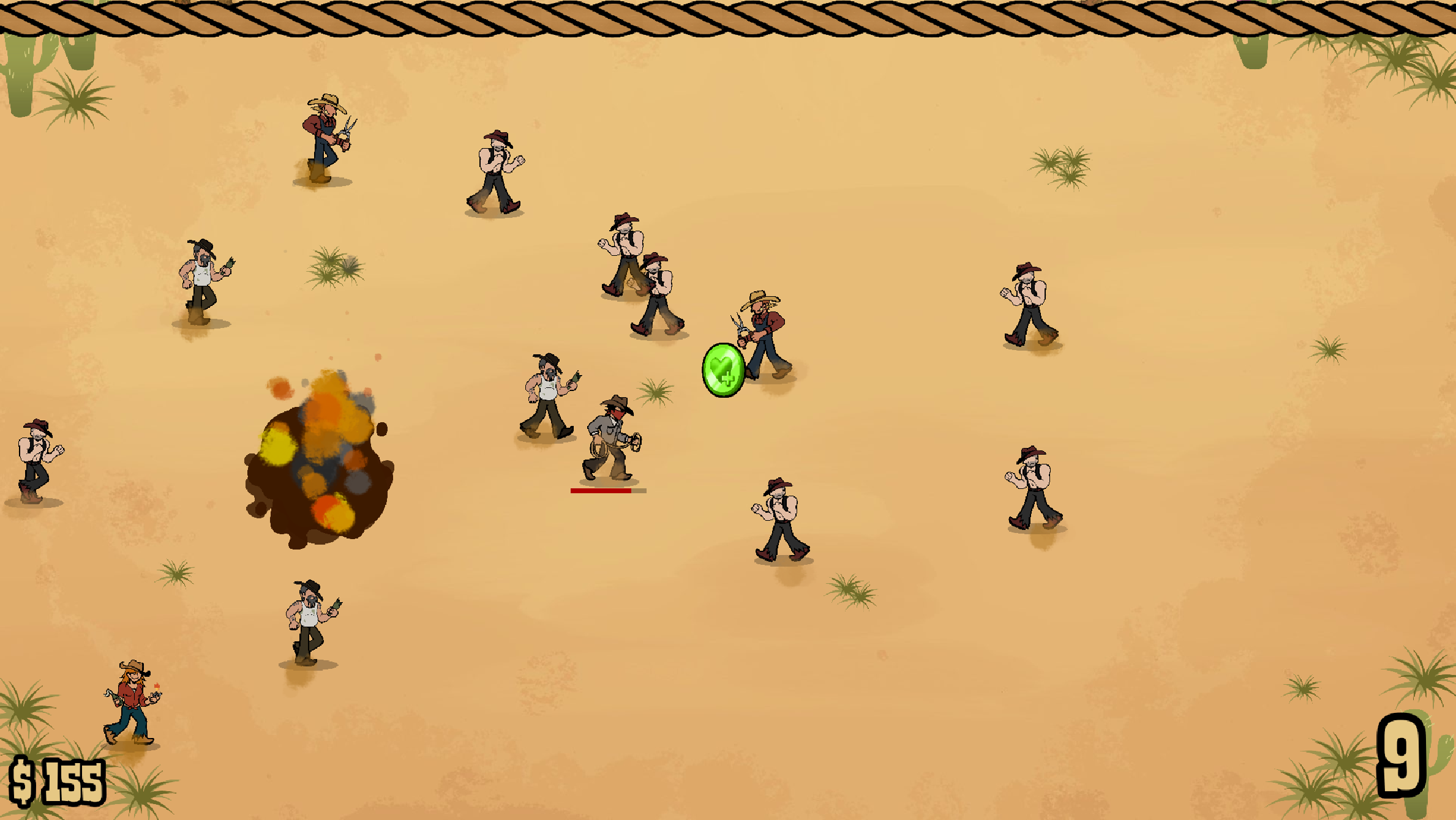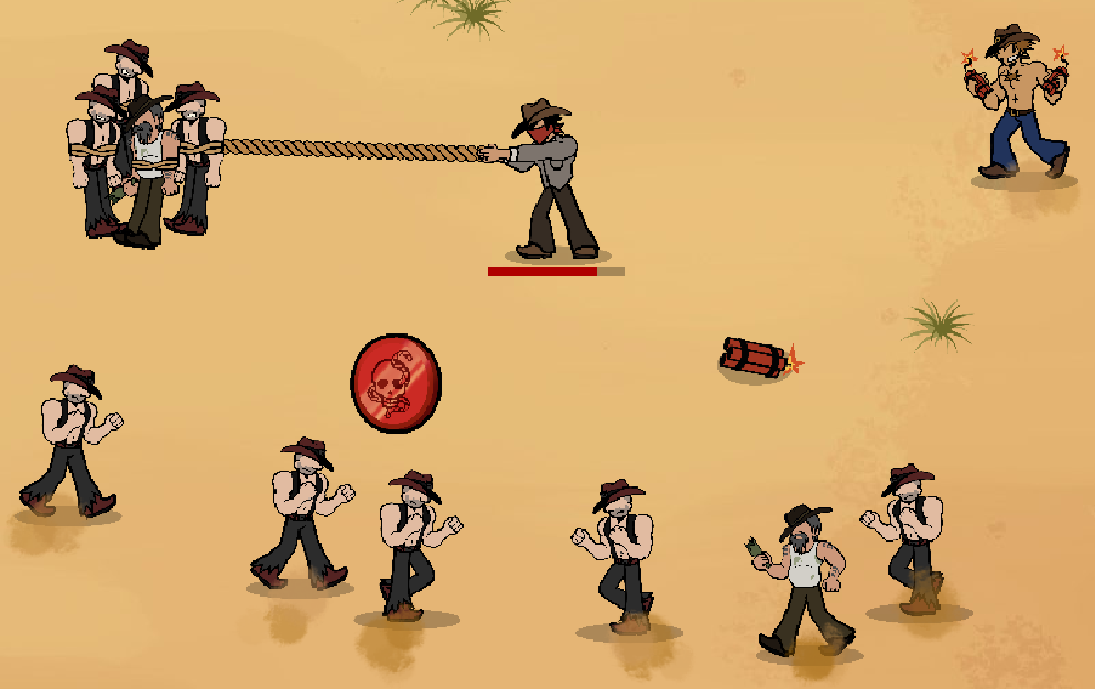 You are a cowboy equipped with a single lasso. Use your lasso to bind enemies and make them your weapon of choice against the waves of enemies coming your way!